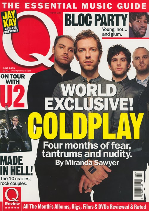 The colour scheme has mainly black and white writing although the masthead highlights the word ‘Coldplay’ in a yellow font this is to entice reader with the contrast of the colours so that it is easy to see if the magazine is on a shelf. The way Q has used the font is that any band which is mentioned they put in a larger font so that it headlines what artists are going to be spoken about in that issue. The different fonts used on the front cover makes the magazine look interesting, instead of it all in one font and looking boring.